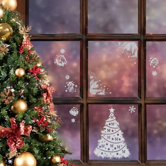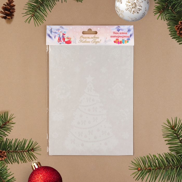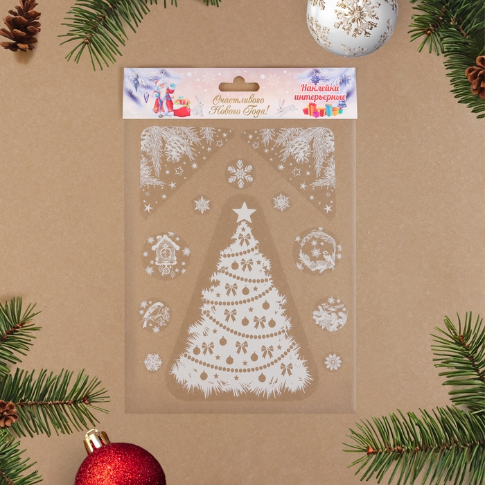Набор наклеек новогодних "Ёлка белая" вырубная, 40 х 30 см