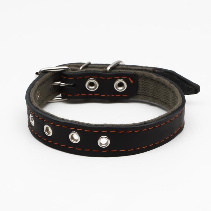 Ошейник кожаный на синтепоне, безразмерный, 54 х 2,5 см, ОШ 19-47 см, чёрный