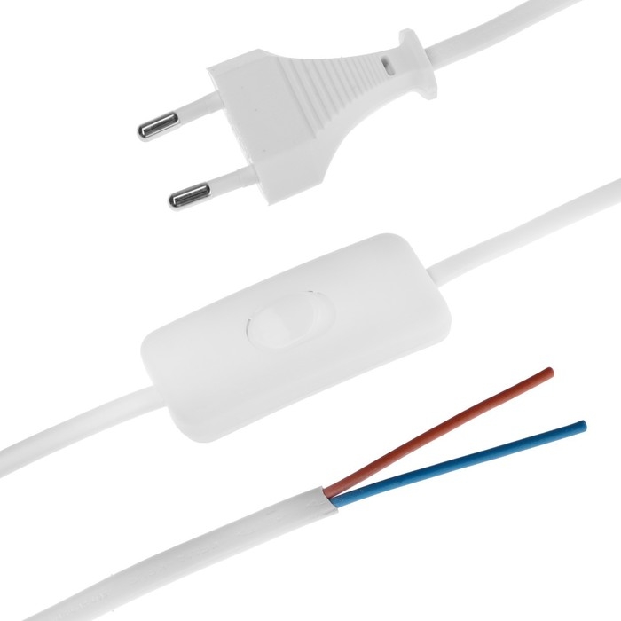 Шнур сетевой с выключателем для бра, 1,5 м, ШВВП 2 х 0.5 мм2, белый