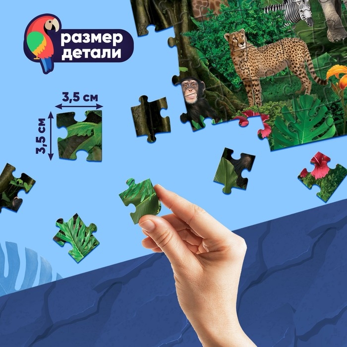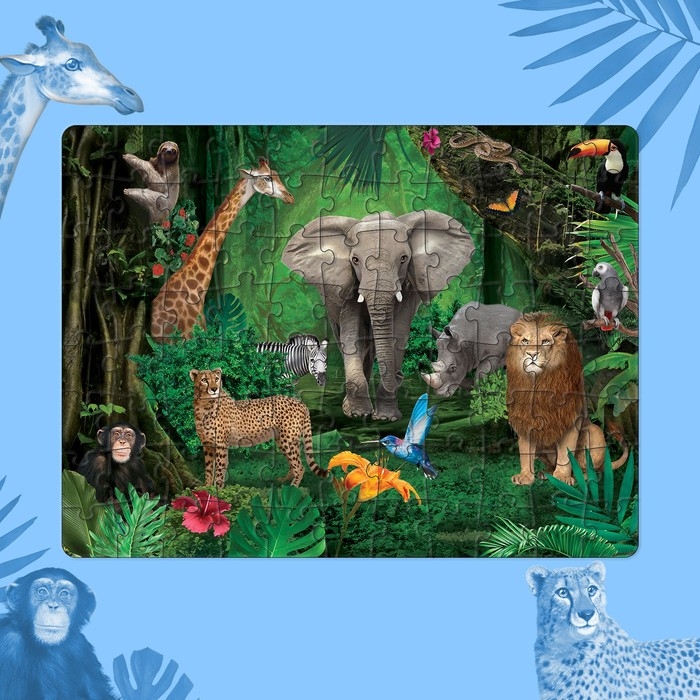 Cветящийся пазл «В жарких странах» — это занимательная развивающая игра в новом формате. Достаточно выключить свет в комнате, и вы увидите, как собранная картинка благодаря особой краске начнёт светиться в темноте.