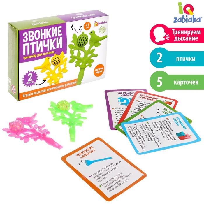 Внутри набора вы обнаружите 2 свистка и карточки с интересными развивающими заданиями. Они помогут малышу потренировать дыхание и правильно произносить звуки, буквы, слоги и слова.