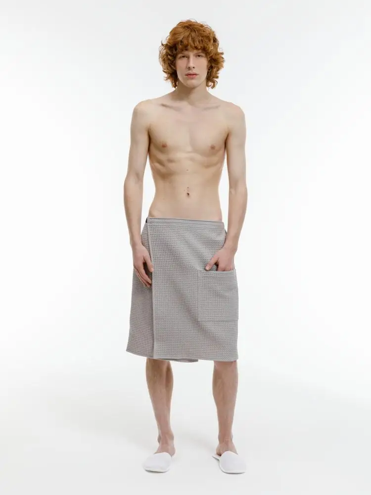 Килт вафельный мужской Onsen, светло-серый, единый размер