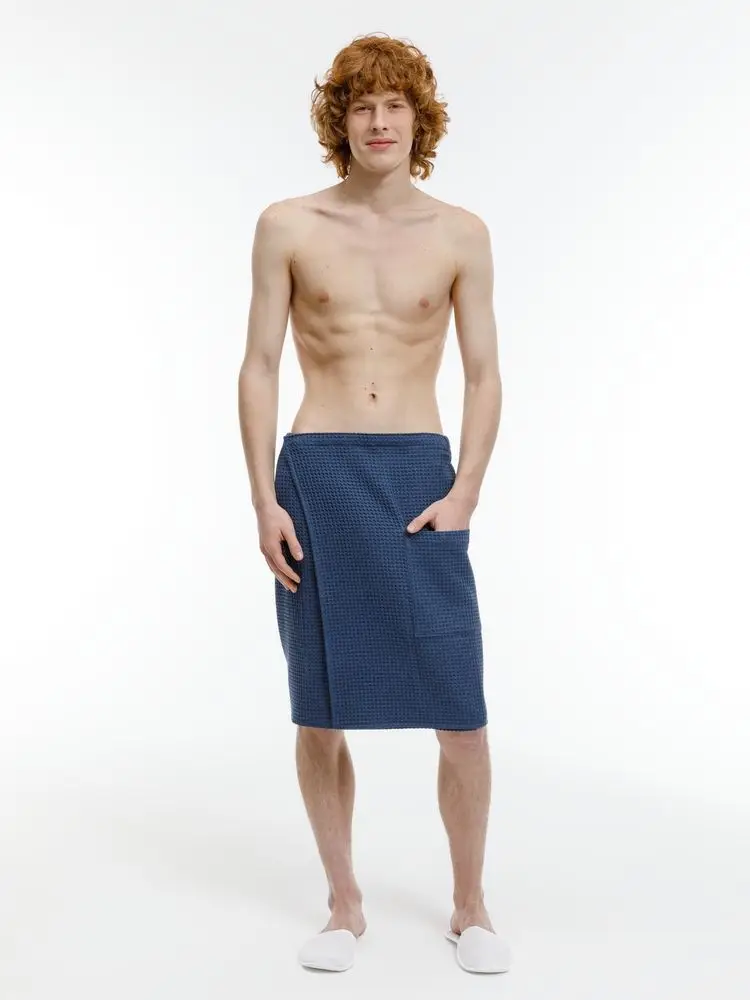 Килт вафельный мужской Onsen, темно-синий, единый размер