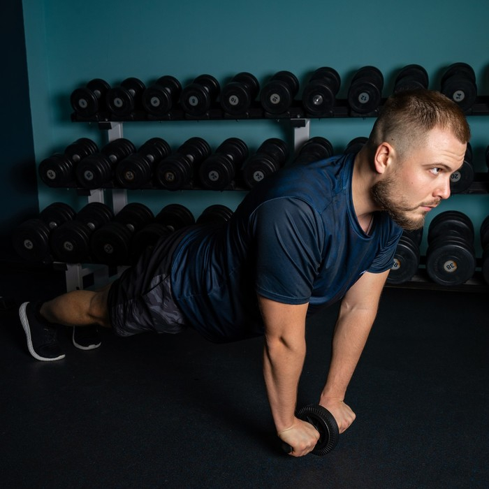 Ролик для пресса — это простой, но достаточно эффективный спортивный снаряд. Во время тренировок с ним прорабатываются все группы мышц, основная нагрузка приходится на пресс.