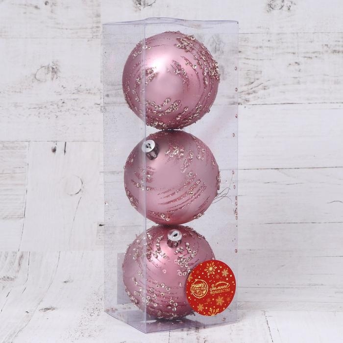 Набор шаров пластик d-8 см, 3 шт "Джейн пайетки" розовый