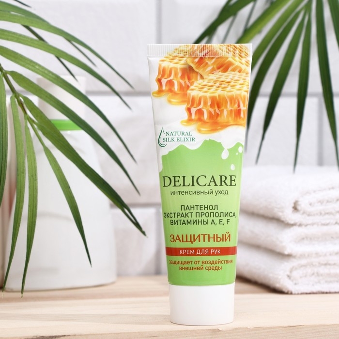 Состав (INCI): Water (Aqua), Heliantus annus (Sunflower) oil, Glycerine, Glyceryl Stearate, Cetearyl Alcohol, Сyclopentasiloxane, Ceteareth-20, Paraffinum Liquidum (Mineral Oil), Dimethicone, Butyrospermum parkii (Karite) oil, Propolis Extract, Panthenol, Vitamin A, E, F, Carbomer, Parfum, Sodium Hydroxide, Benzyl Alcohol, Methylchloroisothiazolinone, Methyliso- thiazolinone, Disodium EDTA, BHT, BHA.