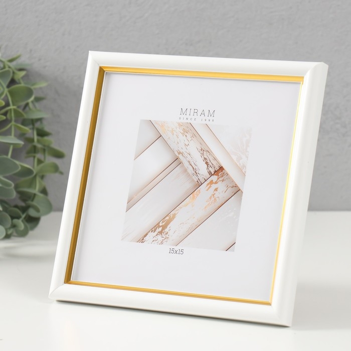 Фоторамка пластик "МИРАМ" 15х15 см, 636461-3, белый с золотом (пластиковый экран)
