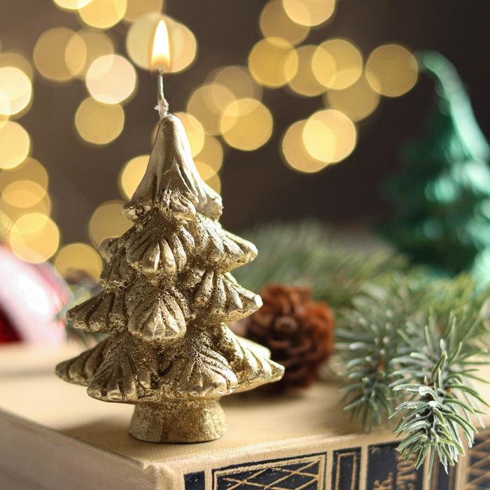 Свеча новогодняя "Ёлочка на пеньке", 7 см, золотая