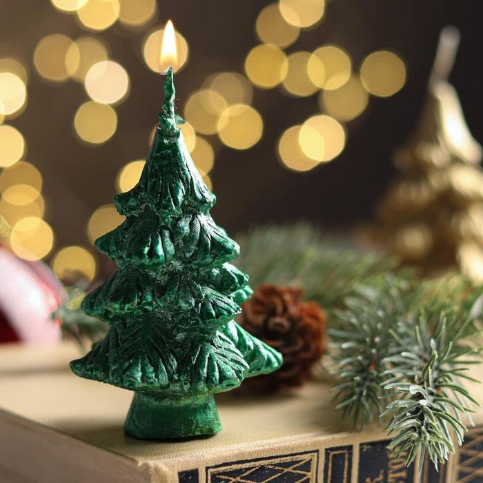 Свеча новогодняя "Ёлочка на пеньке", 7 см, зеленая