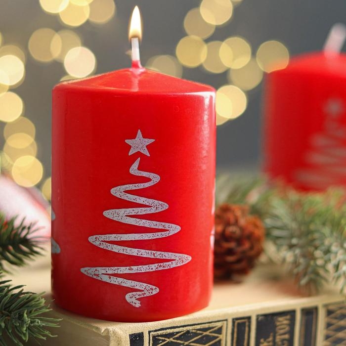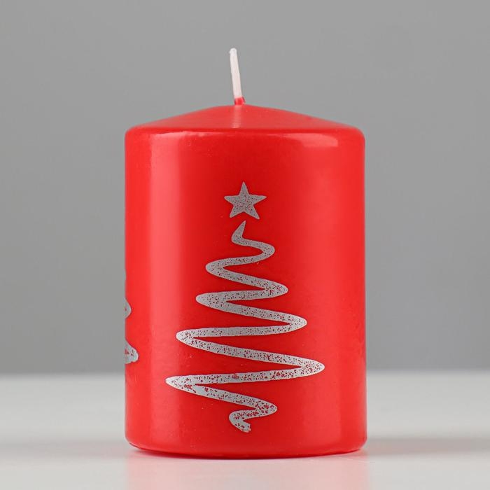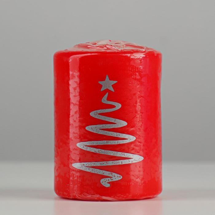 Свеча - цилиндр "Ёлочка", 5,6х8 см, красная с серебром