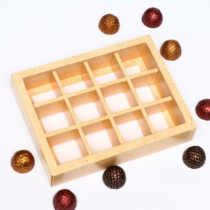 Упаковка для конфет, крафт, на 9 шт, 13,5 х 13,5 х 3,2 см