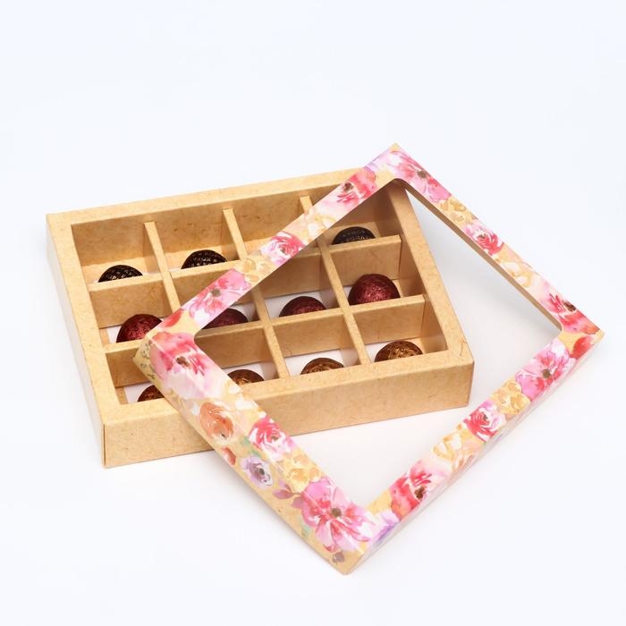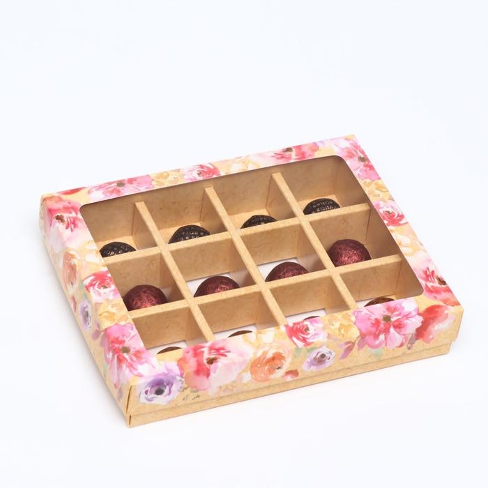 Коробка для 8 конфет + шоколад, с окном, крафт, 17.7×17.85×3.85 см
