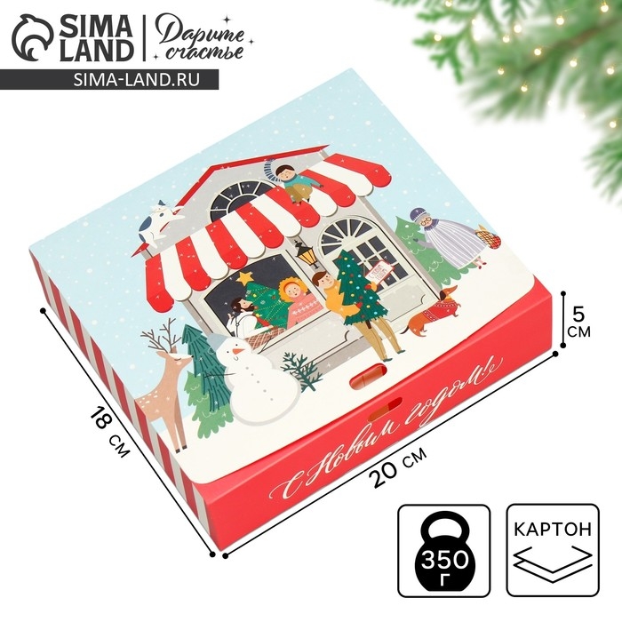 Коробка подарочная новогодняя складная «Новогодние истории», 20 х 18 х 5 см, БЕЗ ЛЕНТЫ, Новый год