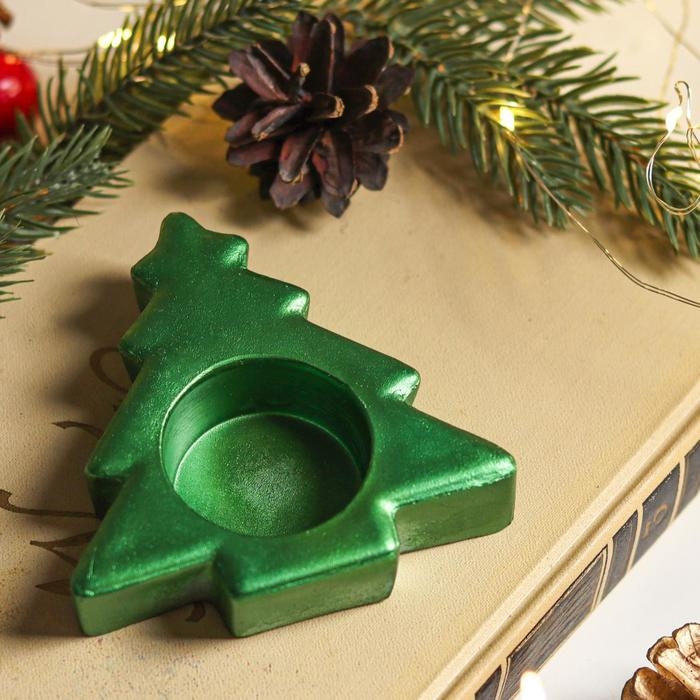 Подсвечник новогодний "Ёлочка", 2,5х9 см, зеленый металлик