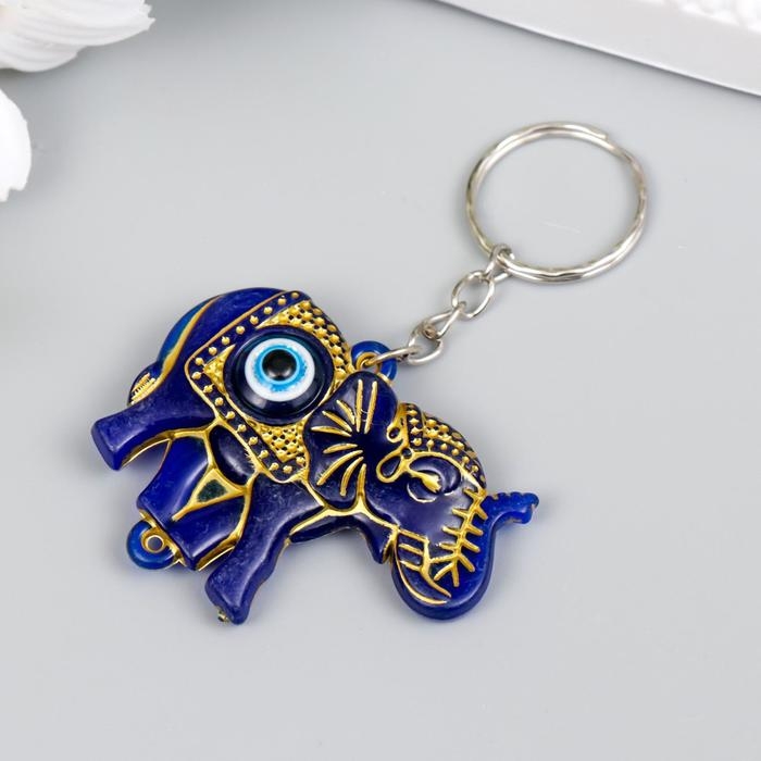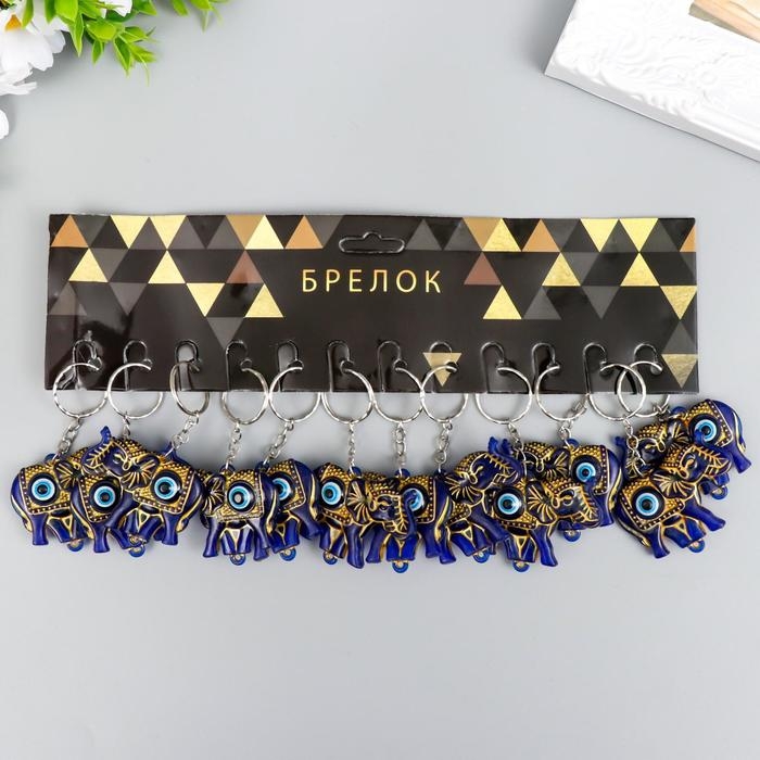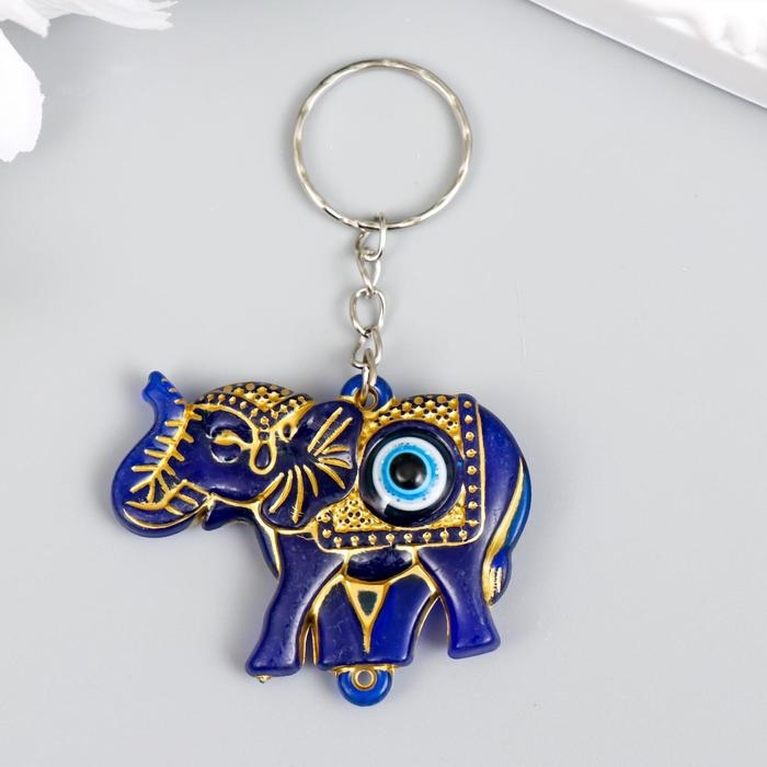 Брелок пластик глазки "Индийский слон от сглаза" синий с золотом 3,5х5 см