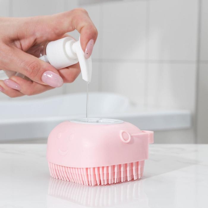 Силиконовая мочалка с дозатором — это удобная альтернатива классическим моделям. Мягкие щетинки деликатно очищают кожу от загрязнений, не травмируя её.