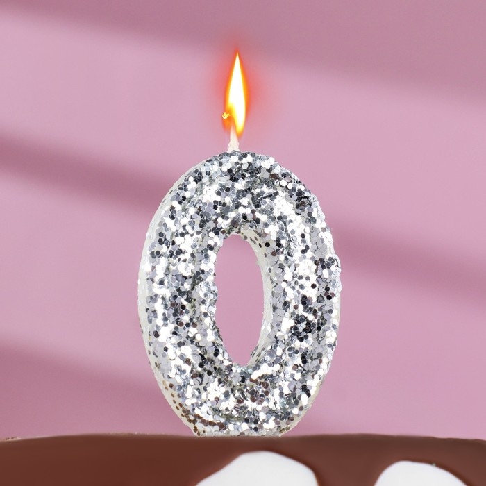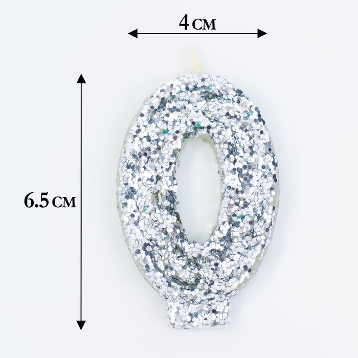 Свеча в торт «Блестки», цифра "0", серебро, 6.5х4