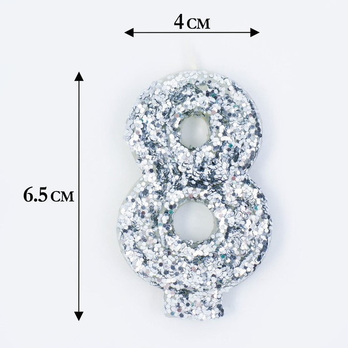 Свеча в торт «Блестки», цифра "8", серебро, 6.5х4