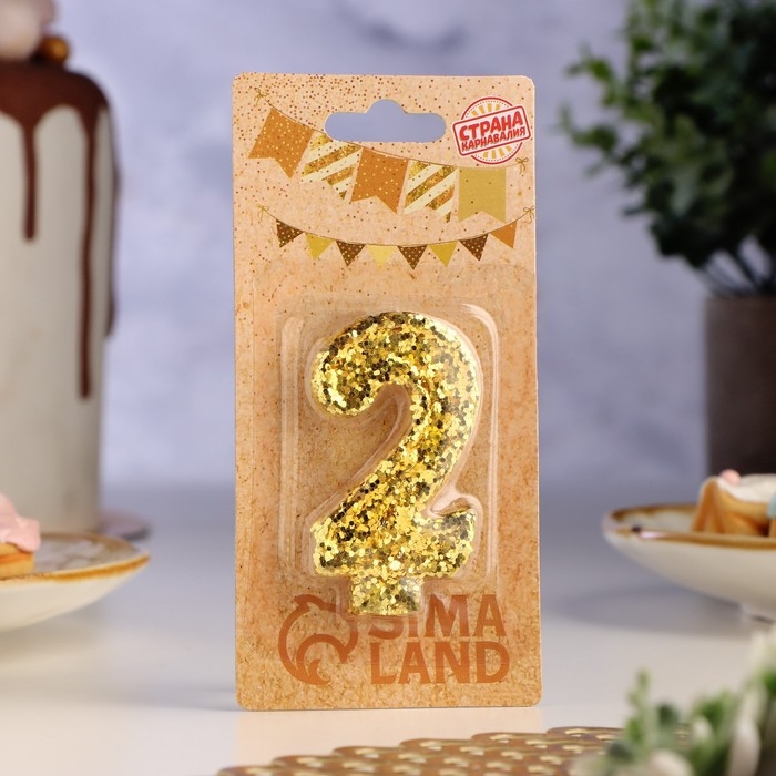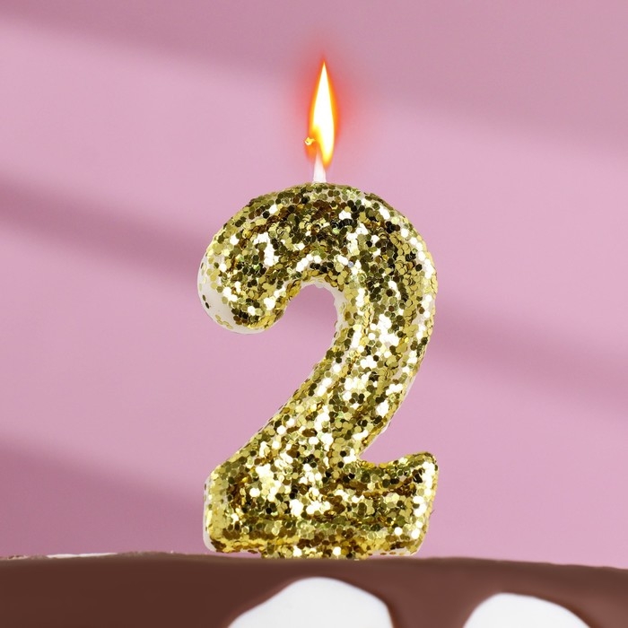 Свеча в торт «Блестки», цифра "2", золото, 6.5х4