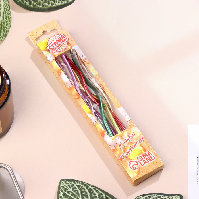 Свечи для торта "Серпантин" 6 шт, коктейльные, разноцветные