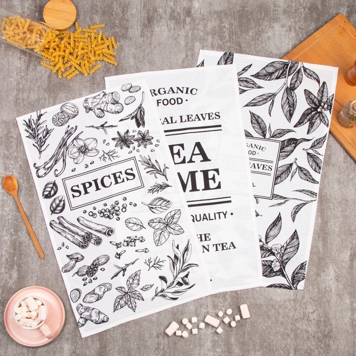 Набор кухонных полотенец Доляна Organic food 35х60см-3шт, 100% хлопок