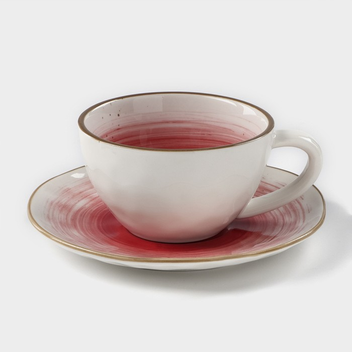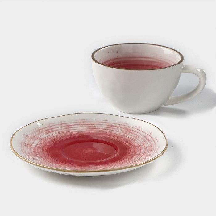 Чайная пара фарфоровая Доляна «Космос», 2 предмета: чашка 250 мл, блюдце d=16 см, цвет красный