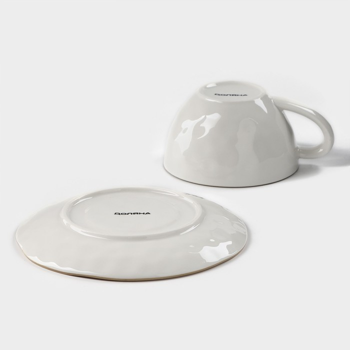 Чайная пара керамическая «Лист», 2 предмета: кружка с ложкой 180 мл, блюдце d=13,5 см, цвет белый
