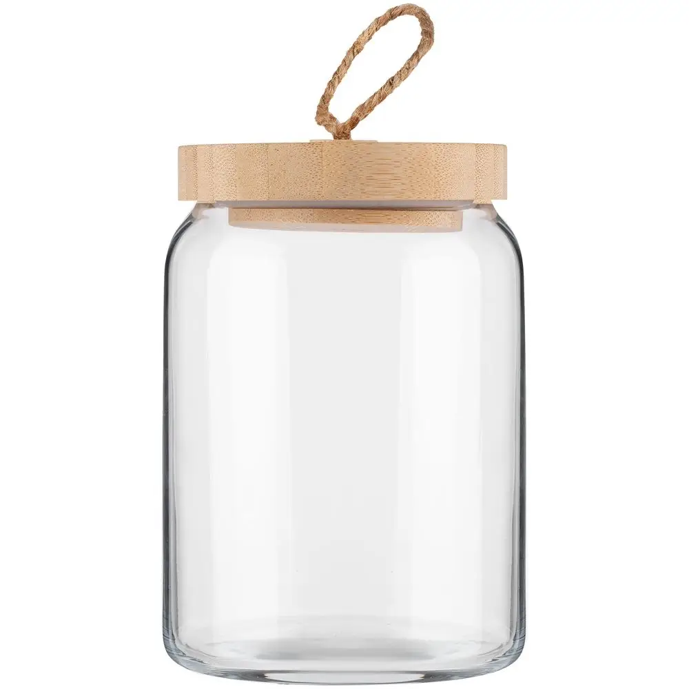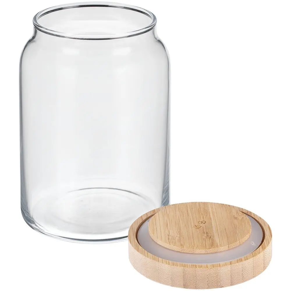 Банка с крышкой из натурального бамбука с привлекательным и экологичным дизайном. Крышка закрывается герметично, надежно защищая содержимое от влаги и воздуха и создавая идеальные условия для хранения.Емкость 860 мл.