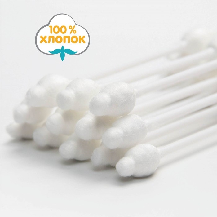 Мягкий и безопасный наконечник изготовлен из натурального мягкого 100% хлопка, который хорошо впитывает влагу и отлично справляется с загрязнениями.