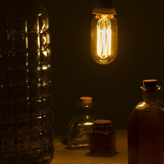 Лампа накаливания винтажная "Колба", T45, 60 Вт, Е27, 230 В, 113х45 мм, теплый белый