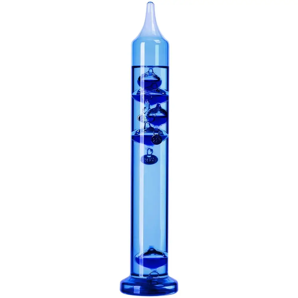 Любопытный термометр, изобретенный великим Галилео Галилеем, который первым обнаружил, что плотность жидкости увеличивается при снижении температуры и уменьшается при ее повышении.