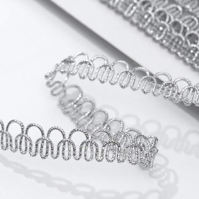 Тесьма декоративная «Петля», 12 мм, 10 ± 1 м, цвет серебряный