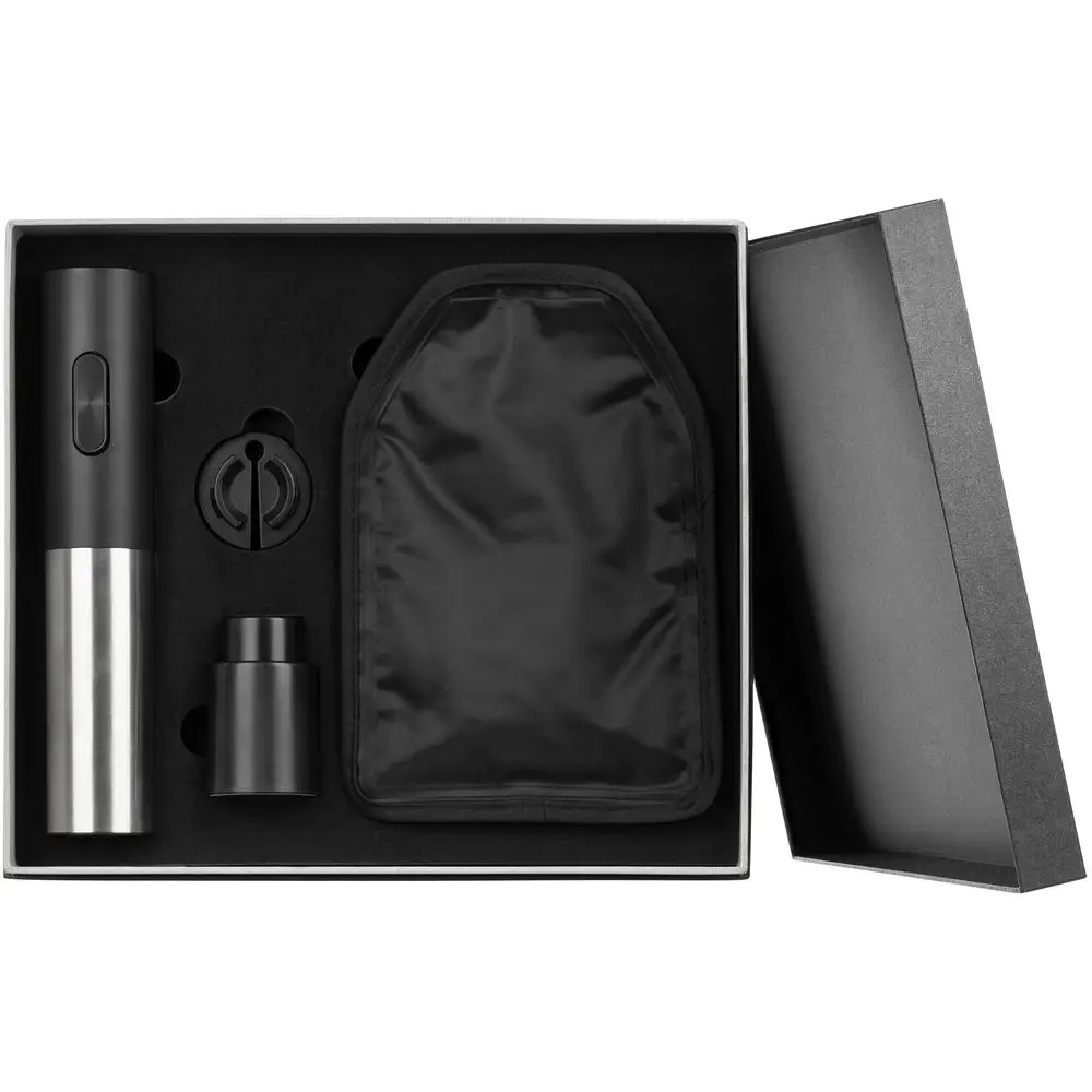 - Электрический штопор — незаменимый помощник для ценителей вина. Позволяет легко и быстро справиться с пробкой любой прочности и открыть бутылку. Нажмите нижнюю кнопку, и лезвие вкрутится в пробку, нажмите верхнюю — бутылка будет открыта.