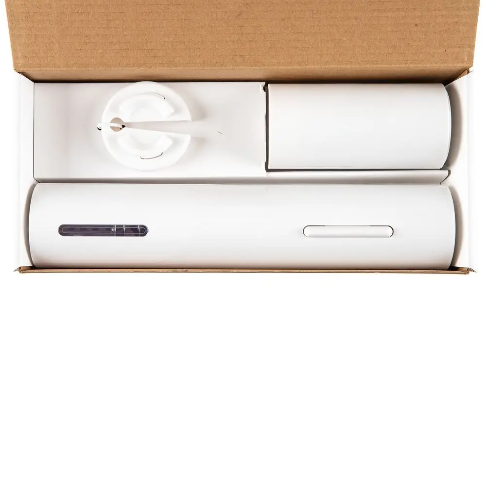 - Комплектация: электрический штопор, нож для удаления фольги, электрическая пробка для вина, инструкция, фирменная коробка.