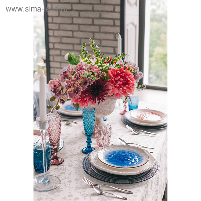 Тарелка Риштанская Керамика "Цветы", синяя, рельефная, 27см