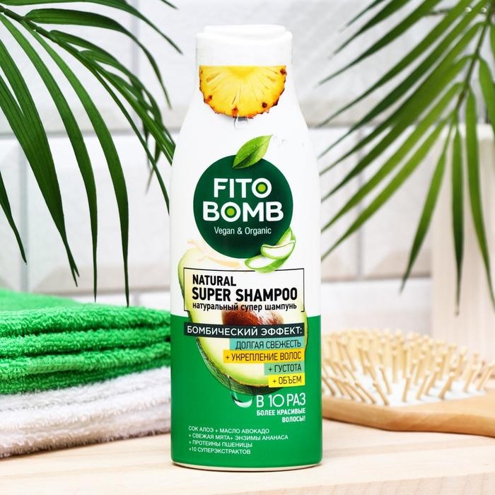 Шампунь для волос FITO BOMB сок алоэ, масло авокадо и экстракт мяты, 250 мл