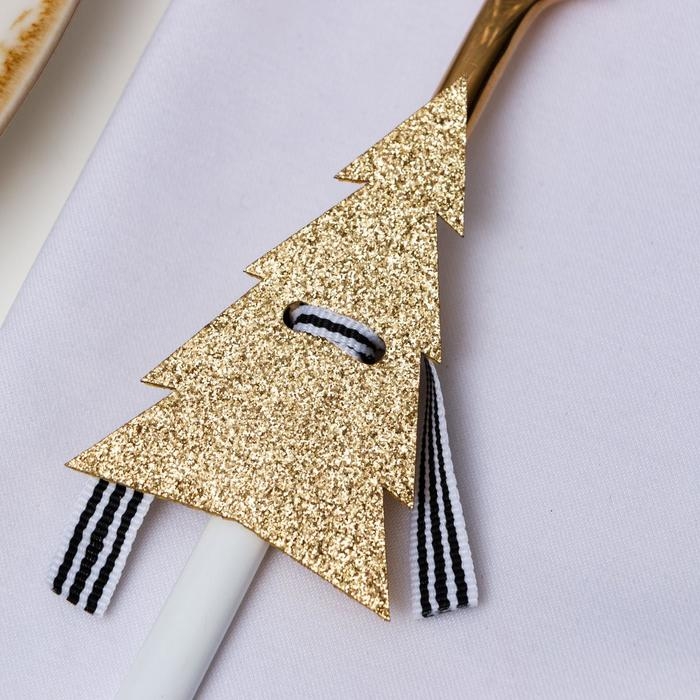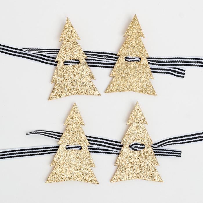 Новый год. Набор для декора столовых предметов «Елка», 4 шт, цвет золото 5х7,5 см 100% п/э, фетр