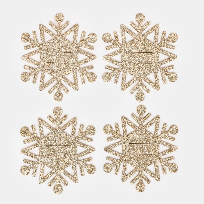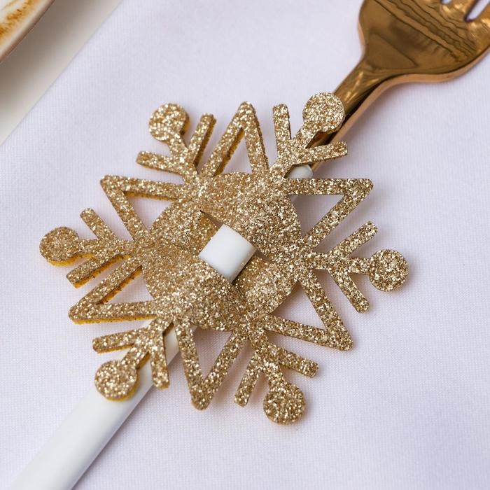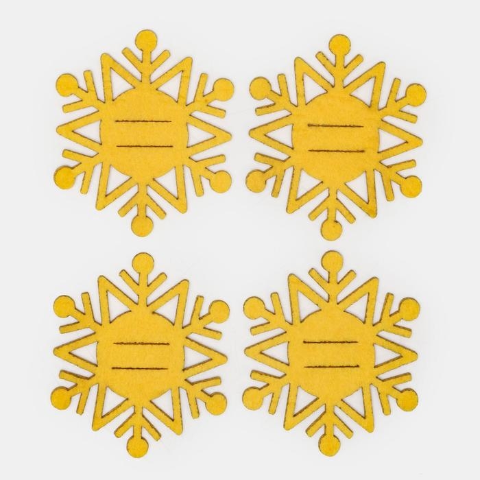 Новый год. Набор для декора столовых предметов «Снежинка», 4 шт, цвет золото 6,5х7,5 см, 100% п/э, фетр 626098