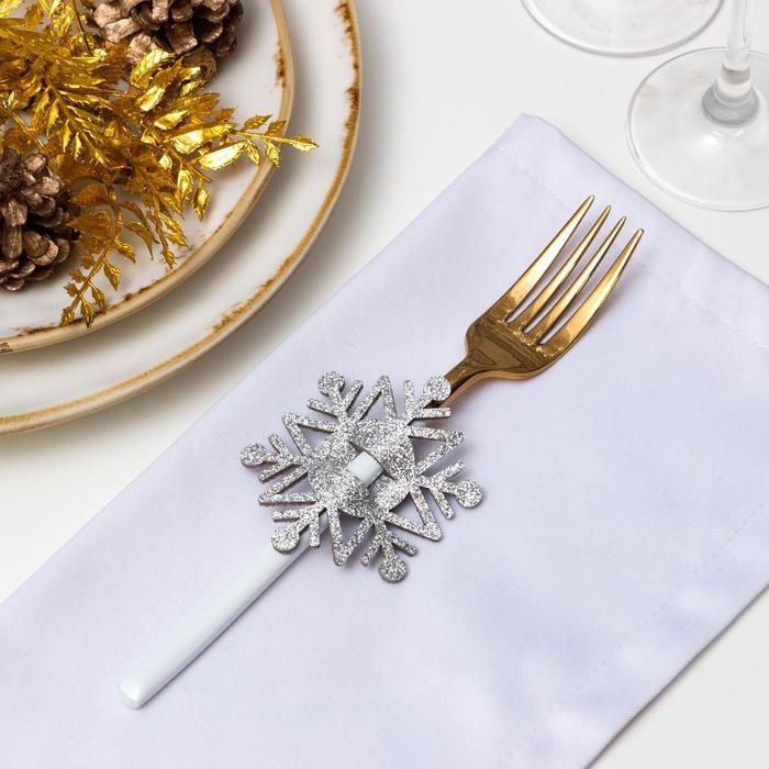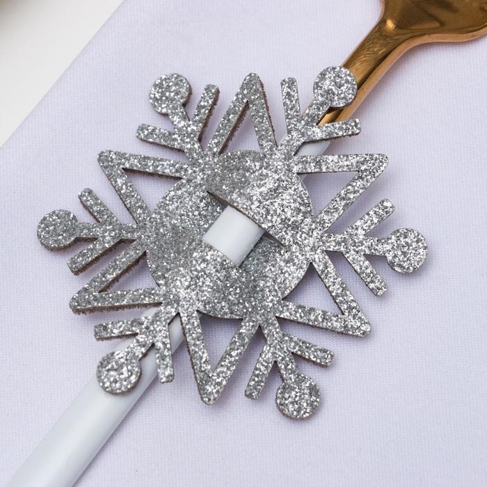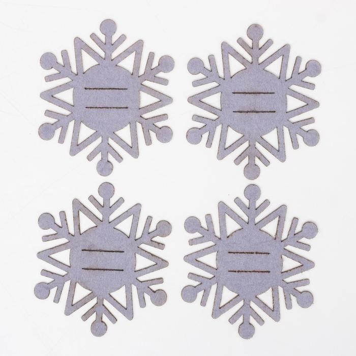 Новый год. Набор для декора столовых предметов «Снежинка», 4 шт,цвет серебро 6,5х7,5 см, 100% п/э, фетр 626098