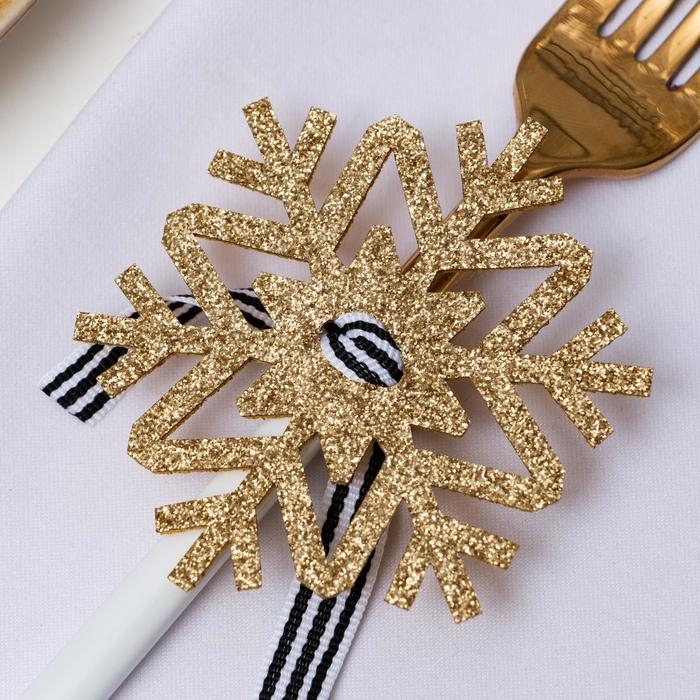 Новый год. Набор для декора столовых предметов «Снежинка», 4 шт, цвет золото 7х8 см 100% п/э, фетр