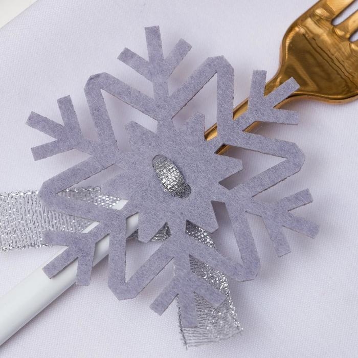 Новый год. Набор для декора столовых предметов «Снежинка»,4 шт, серый 7х8 см 100% п/э, фетр