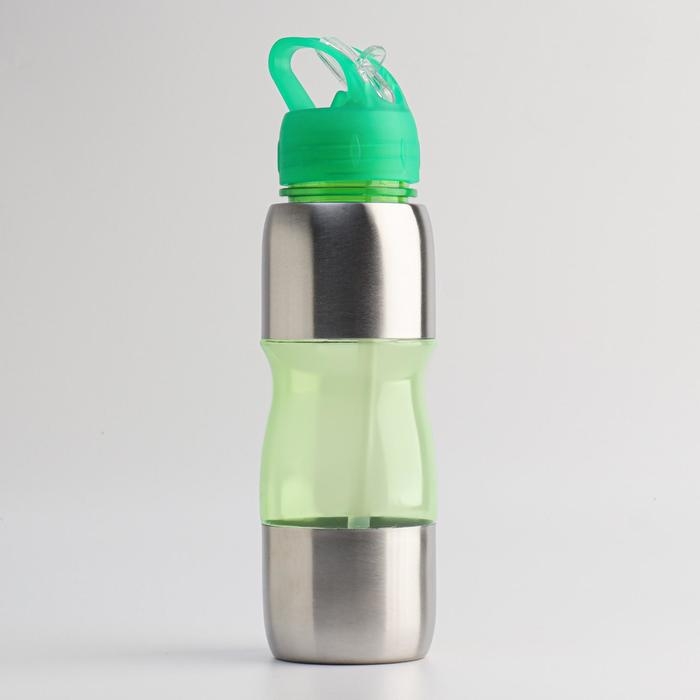 Бутылка для воды велосипедная, 650 мл, "Альби", с поильником, 25 х 6 см, зелёная