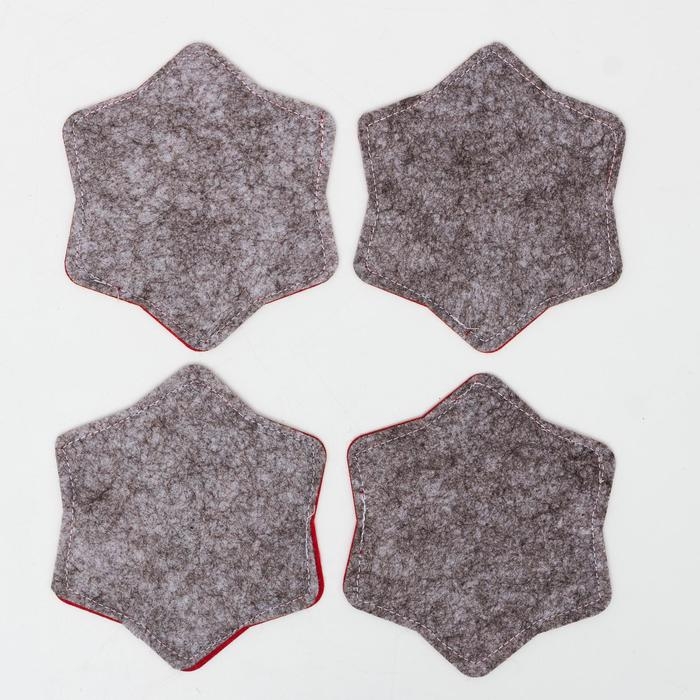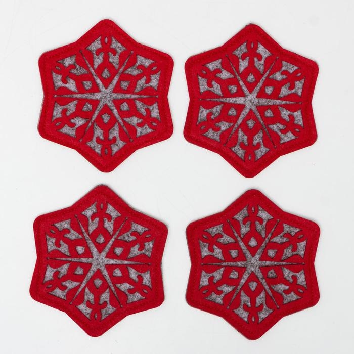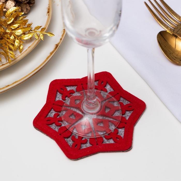 Новый год. Набор подставок для бокала "Снежинка", 4 шт, цв. красный 8,5 см, 100; п/э, фетр