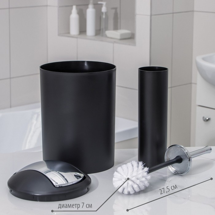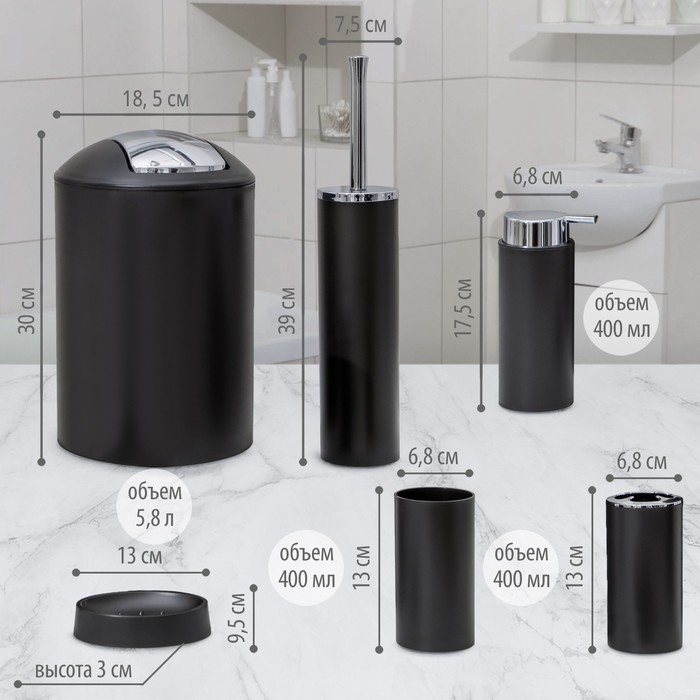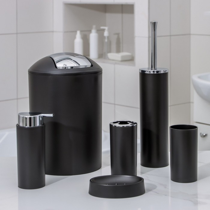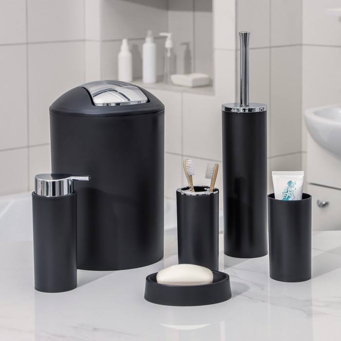 Набор аксессуаров для ванной комнаты SAVANNA «Сильва», 6 предметов (дозатор, мыльница, 2 стакана, ёршик, ведро), цвет чёрный