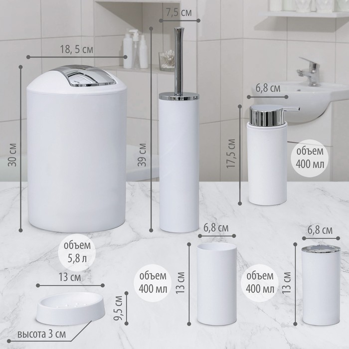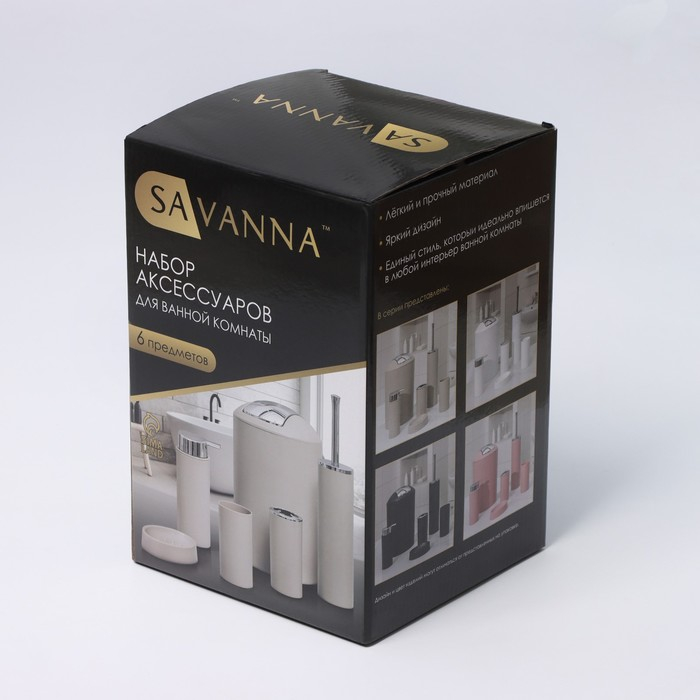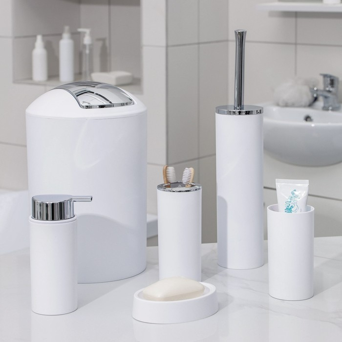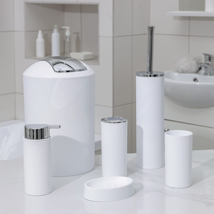 Набор аксессуаров для ванной комнаты SAVANNA «Сильва», 6 предметов (дозатор, мыльница, 2 стакана, ёршик, ведро), цвет белый
