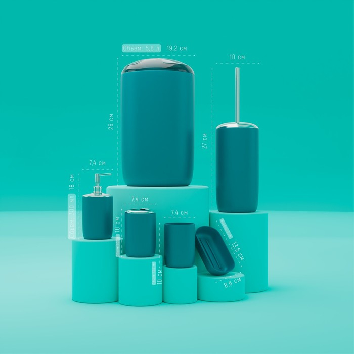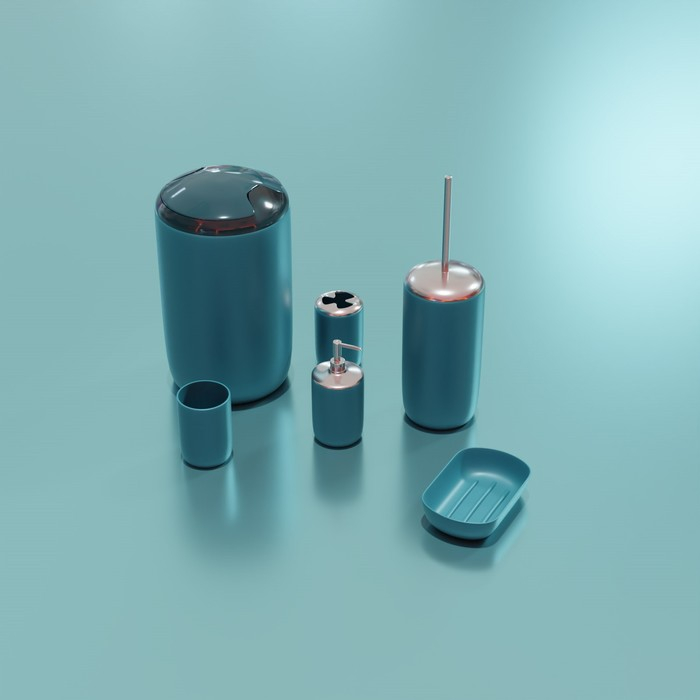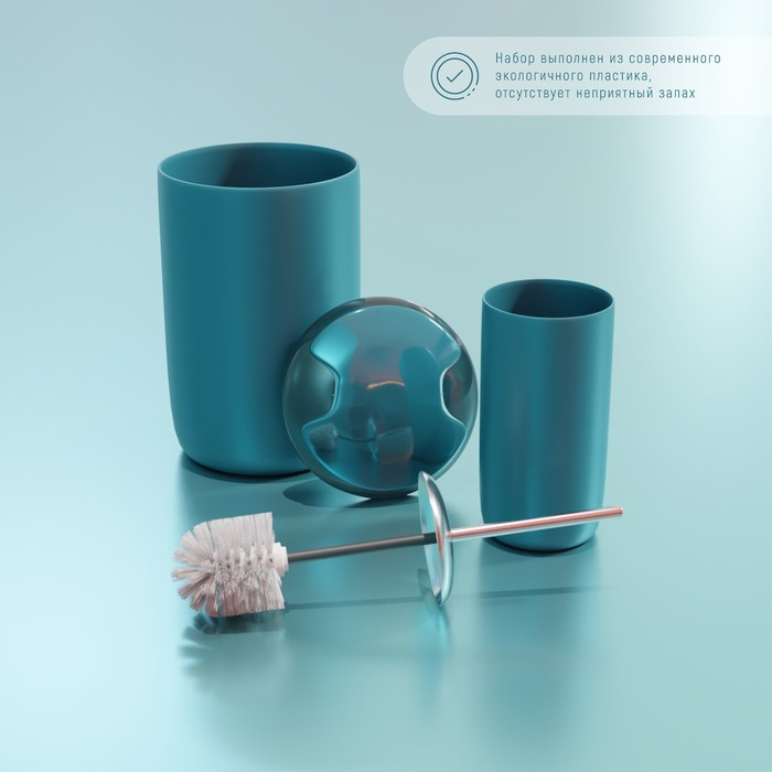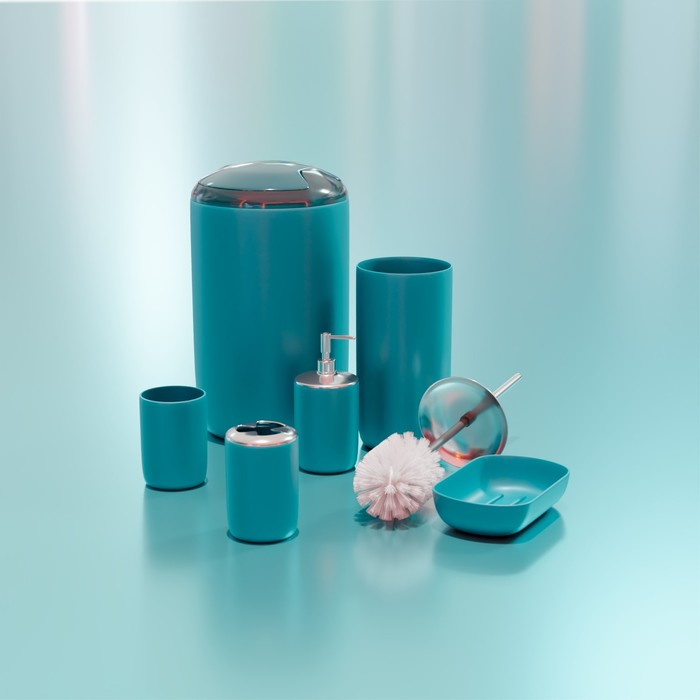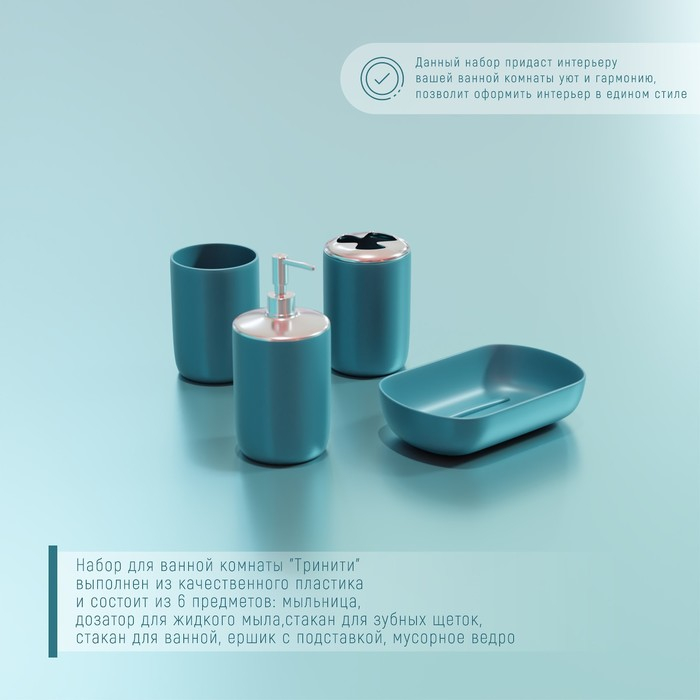 Набор аксессуаров для ванной комнаты «Тринити», 6 предметов (мыльница, дозатор для мыла, два стакана, ёрш, ведро), цвет голубой