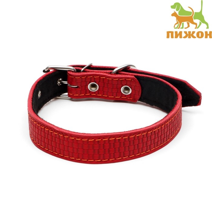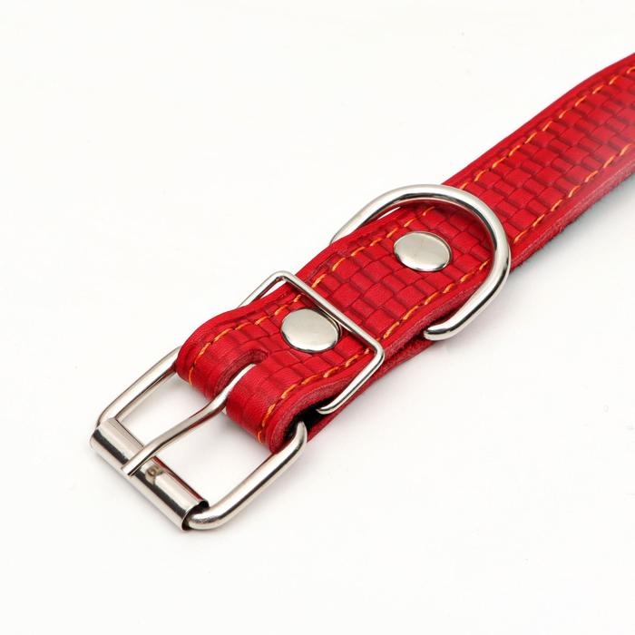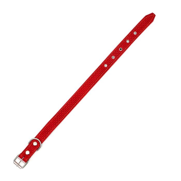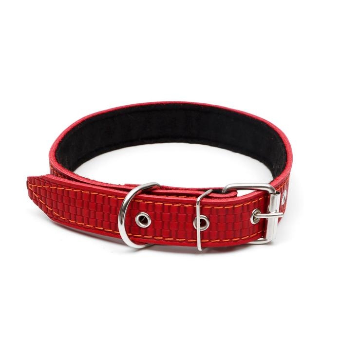 Ошейник кожаный с тиснением на синтепоне, 65 х 3 см, ОШ 40-55 см, красный