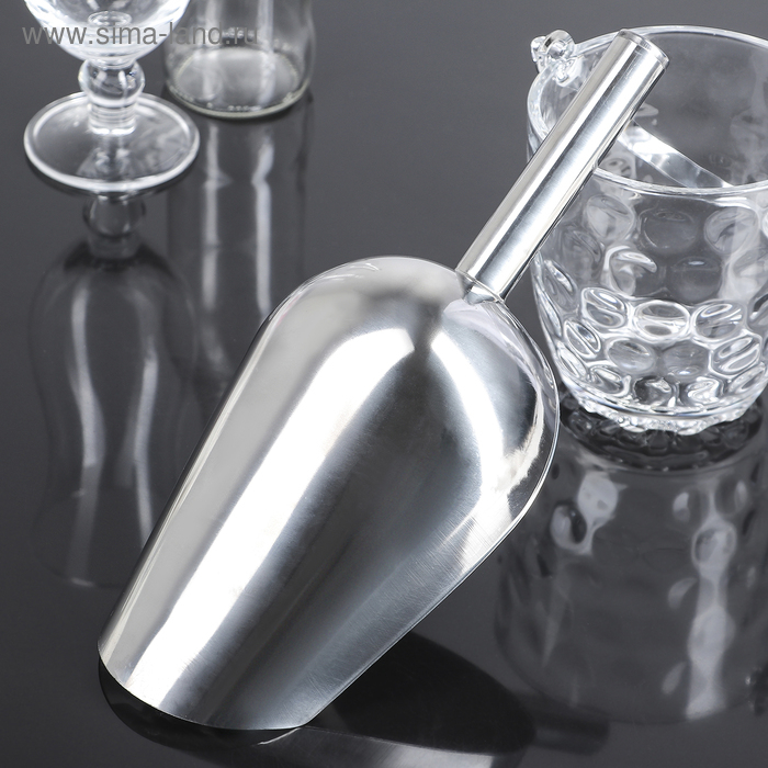 Совок из нержавеющей стали для льда и сыпучих продуктов, 260 мл, 24×9 см, цвет хромированный