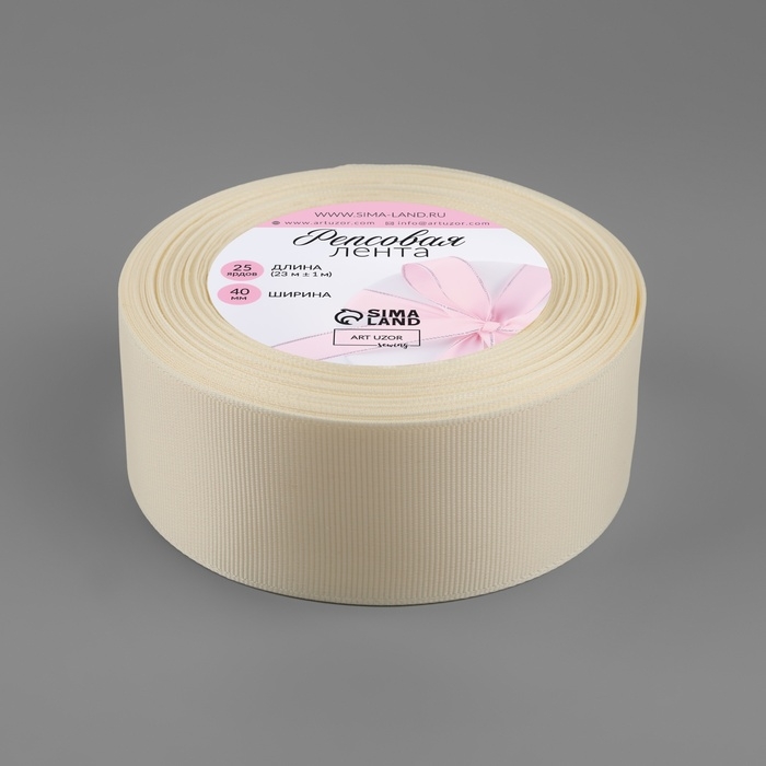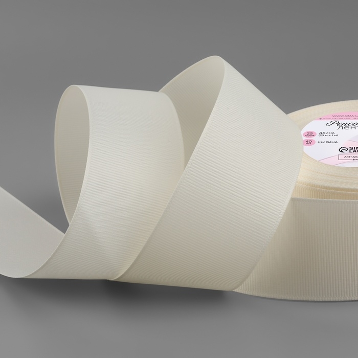 Лента репсовая, 40 мм, 23 ± 1 м, цвет молочный №08