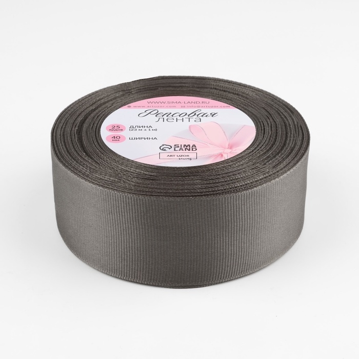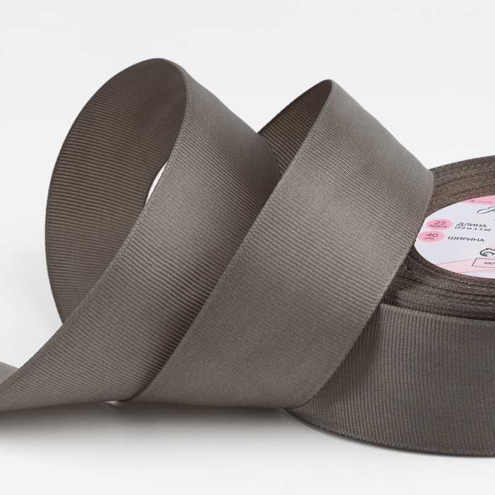 Лента репсовая, 40 мм, 23 ± 1 м, цвет серый №107